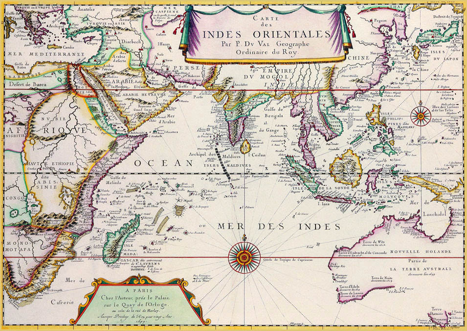 КАРТА ОСТ-ИНДИИ работы П. Дюваля, штатного географа Короля.