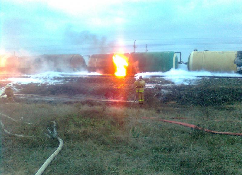 Derailment and fire of rail car with crude oil at Vyshesteblievskaya station of the North Caucasus Railway.