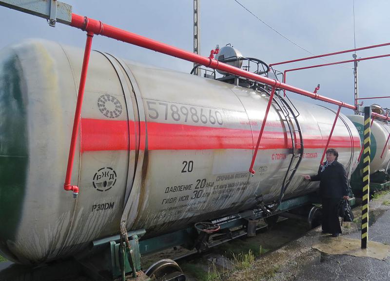 Director General of NEK-Brest Private Unitary Forwarding Enterprise is examining the condition of emergency rail cars with propane at Skandava station of the Polish Railways.